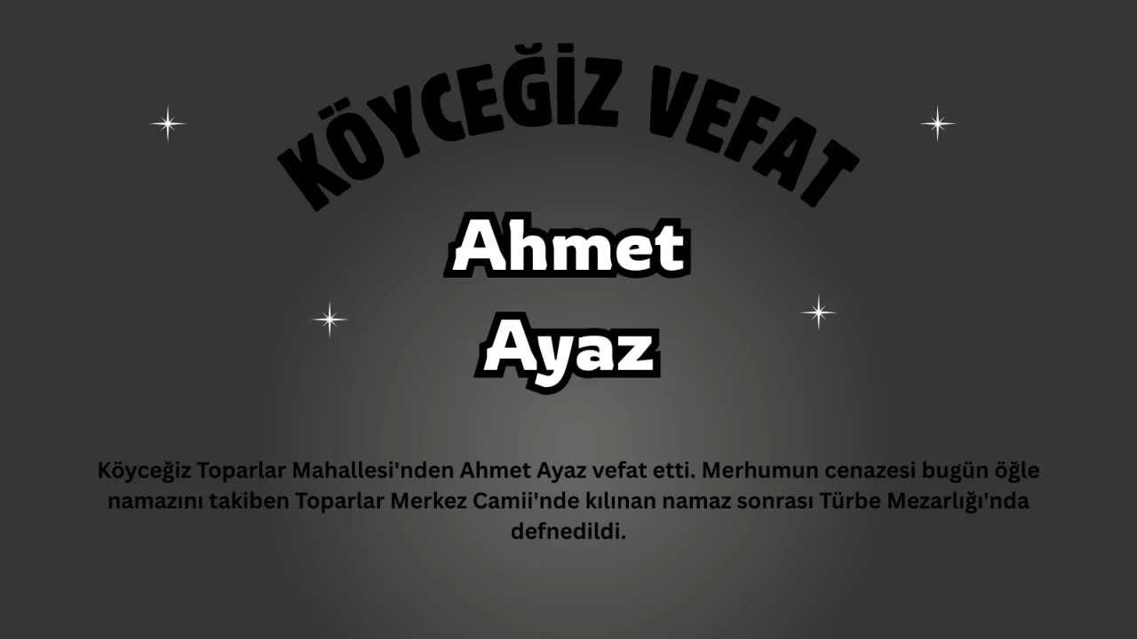 Kılınan cenaze namazının ardından merhumun naaşı, dualar eşliğinde son dinlenme yerine, **Türbe Mezarlığı**'na defnedildi. Ahmet Ayaz, ailesinin ve sevenlerinin gözyaşları arasında Köyceğiz toprağına emanet edilerek son yolculuğuna uğurlandı.